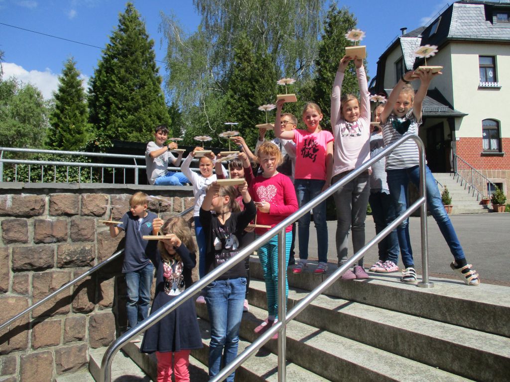 Jeder Drittklässler bastelte eine Solarblume und war stolz, als diese nach dem Unterricht auch den Praxistest in der Sonne mit Bravour bestand.