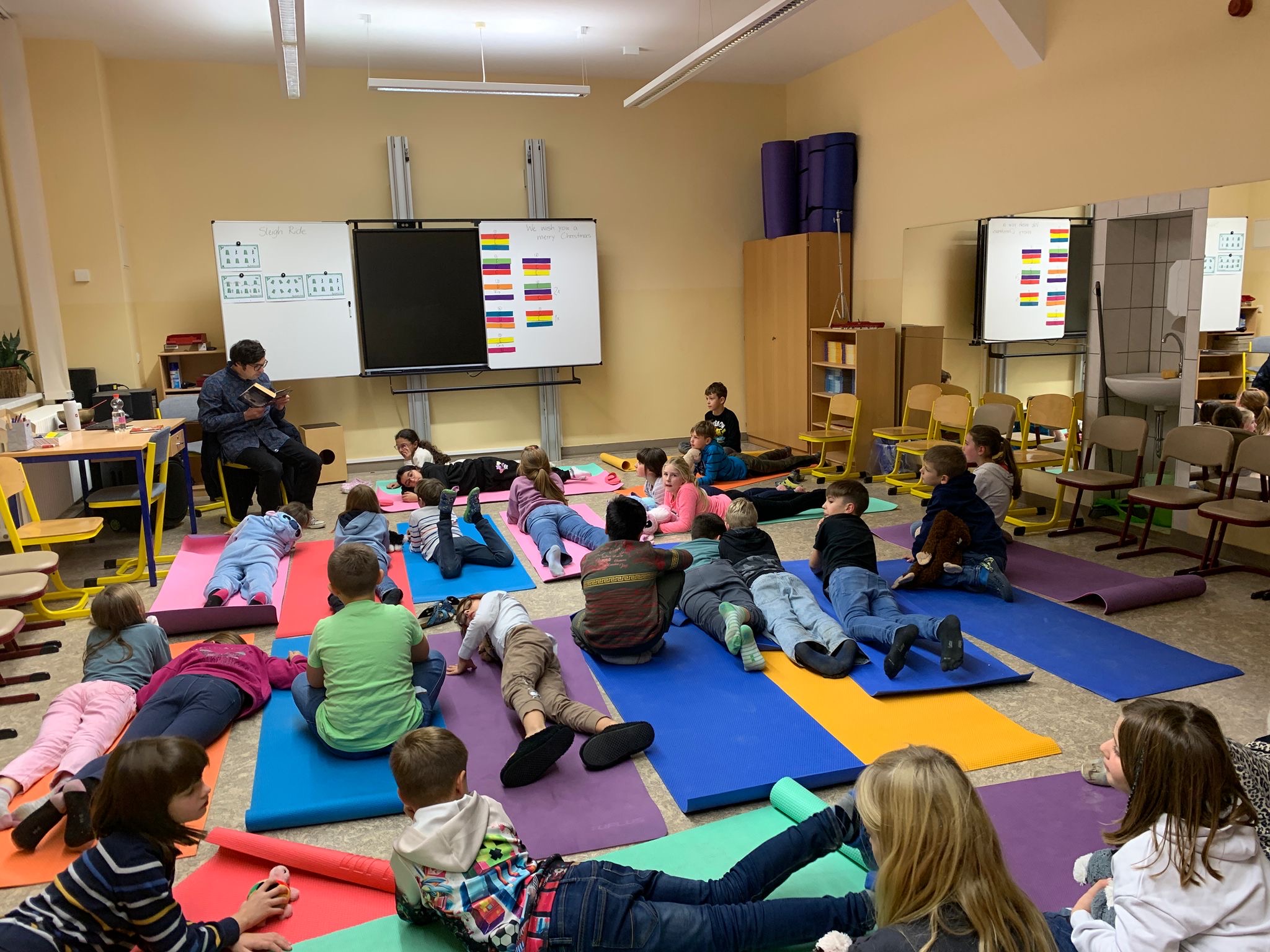 Ein besonderes Highlight war die Vorleserunde mit Herrn Ranalli, der eine spannende Geschichte präsentierte und damit für fesselnde Momente sorgte. Im Anschluss stellten die Kinder ihre eigenen Bücher vor und lasen sich gegenseitig spannende, lustige oder geheimnisvolle Stellen daraus vor. Die Klassenzimmer verwandelten sich in kleine Leseabenteuerwelten.